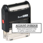 Collection stamps are a fast and effective way to send payment reminders to your customers. This ExcelMark A-1848 custom stamp features a 11/16" by 1-7/8" rectangle impression area and a durable, yet lightweight, plastic construction for long-lasting use. A self-inking mount re-inks the die before each impression, making it ideal for quick, repetitive stamping. In addition, a unique, reversible (two-sided) ink pad doubles the life of the pad. Simply push it out, flip it over, reinsert and keep stamping! Each side of your ExcelMark ink pad initially lasts for thousands of impressions and is simple to re-ink and replace. A clear base on the mount allows you to easily line up those impressions.