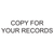 Ensure efficient communication and provide clear labeling with the use of this "COPY FOR YOUR RECORDS" office stamp. A durable, yet lightweight, plastic construction provides long-lasting use.