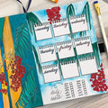 Saturday Script craft stamp available on clear (cling) die. Decorate your journal or planner with this fun stamp designed by lettering artistMissy Briggs! Create simple daily & weekly spreads, eliminating the need towrite out the full word.Requires the use of separate ink pad.