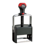 A distinctive heavy-duty stamp designed for frequent and long-term use. The patent-pending rubber band cover and strong structure are designed to ease the handling of a heavy-duty business stamp.