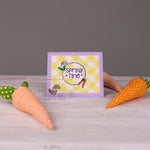 With its playful designs, including a bunny, a dog, some carrots, and a spring time stamp, this stamp set is perfect for creating your own unique greeting cards, scrapbook pages, and other spring-inspired crafts.