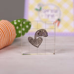 Remove the clear stamps from the backing sheet and place onto clear acrylic stamp block (sold separately). Use your ink pad of choice to add ink to your stamp. Stamp with even pressure for best results. When finished stamping, use stamp cleaner (sold separately) or mild soap and water to remove ink from stamp, then place stamp back on backing sheet for storage. Clear stamps maintain their cling time and time again! You can re-cling your clear stamps by simply rinsing with water.