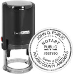 This Arkansas notary stamp for professional notaries creates a high quality seal impression using a round self-inking notary stamp. A self-inking notary stamp mount re-inks the rubber die into the self-contained ink pad before each impression, making it ideal for quick, repetitive stamping during those busy work days. Each side of your ExcelMark ink pad initially lasts for thousands of impressions and is simple to re-ink and replace. A clear base on the mount allows you to easily line up those impressions.