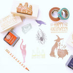 Halloween Hocus Pocus Stamp on rectangle engraved maple art mount. Requires separate ink pad.