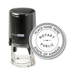 This Kansas notary stamp for professional notaries creates a high quality seal impression using a round self-inking notary stamp. A self-inking notary stamp mount re-inks the rubber die into the self-contained ink pad before each impression, making it ideal for quick, repetitive stamping during those busy work days. Each side of your ExcelMark ink pad initially lasts for thousands of impressions and is simple to re-ink and replace. A clear base on the mount allows you to easily line up those impressions.