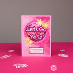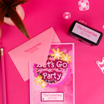 Introducing Cricut cuts - Let's Go Party SVG file. Pair this download with our Absolute Blonde Address Stamp and Pink Party Invitation Tutorial! This free Cricut file features die cuts to help you create a fabulous pink party invitation or greeting card.