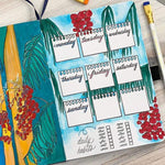 Friday Script craft stamp available on clear (cling) die. Decorate your journal or planner with this fun stamp designed by lettering artistMissy Briggs! Create simple daily & weekly spreads, eliminating the need to write out the full word.Requires the use of separate ink pad.