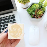 Handmade Stamp on a 2" x 2" engraved maple art mount.
