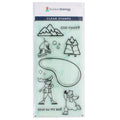 Introducing the Stay Frosty Clear Stamp Set, perfect for all your winter-themed crafts! This set includes a variety of stamps to help you create a cozy winter scene. The set features an icy pond, complete with a playful moose and a friendly polar bear both wearing ice skates. There are also trees to help set the scene and ice skates to add a touch of fun.