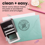 - Clean and Precise - Clear base allows for easy alignment and precise stamping. This self-inking stamp keeps fingers clean with quick-drying ink and easy storage with a smudge-proof design.