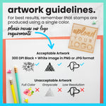 • Customizable - Upload your image or design to quickly and easily create a one-of-a-kind stamp.